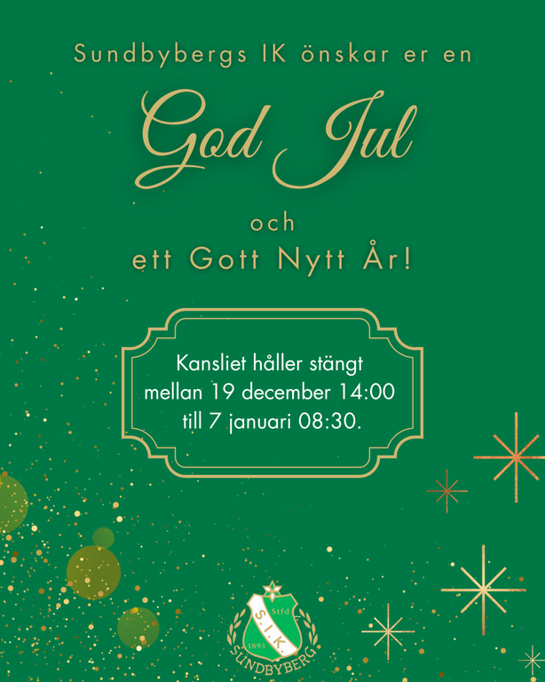 Sundbybergs IK önskar alla utövare, ledare, medlemmar och samarbetspartners en riktigt God Jul och ett Gott Nytt År!